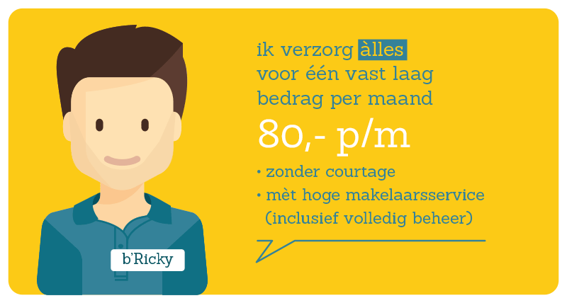 Maak kennis met b’Ricky. Onze meest loyale en toegewijde makelaar met als enige doel om u de service te geven die u verdient. Hij is gespecialiseerd in de vier basis principes die nodig zijn voor een succesvol verhuur van uw vastgoed.